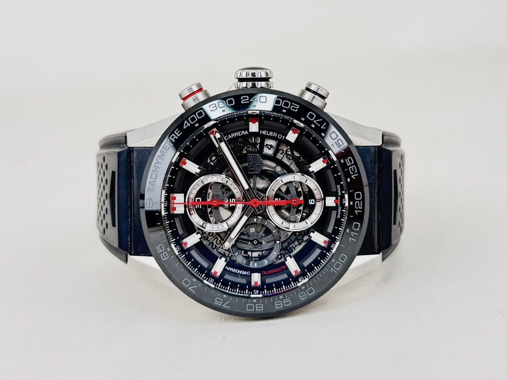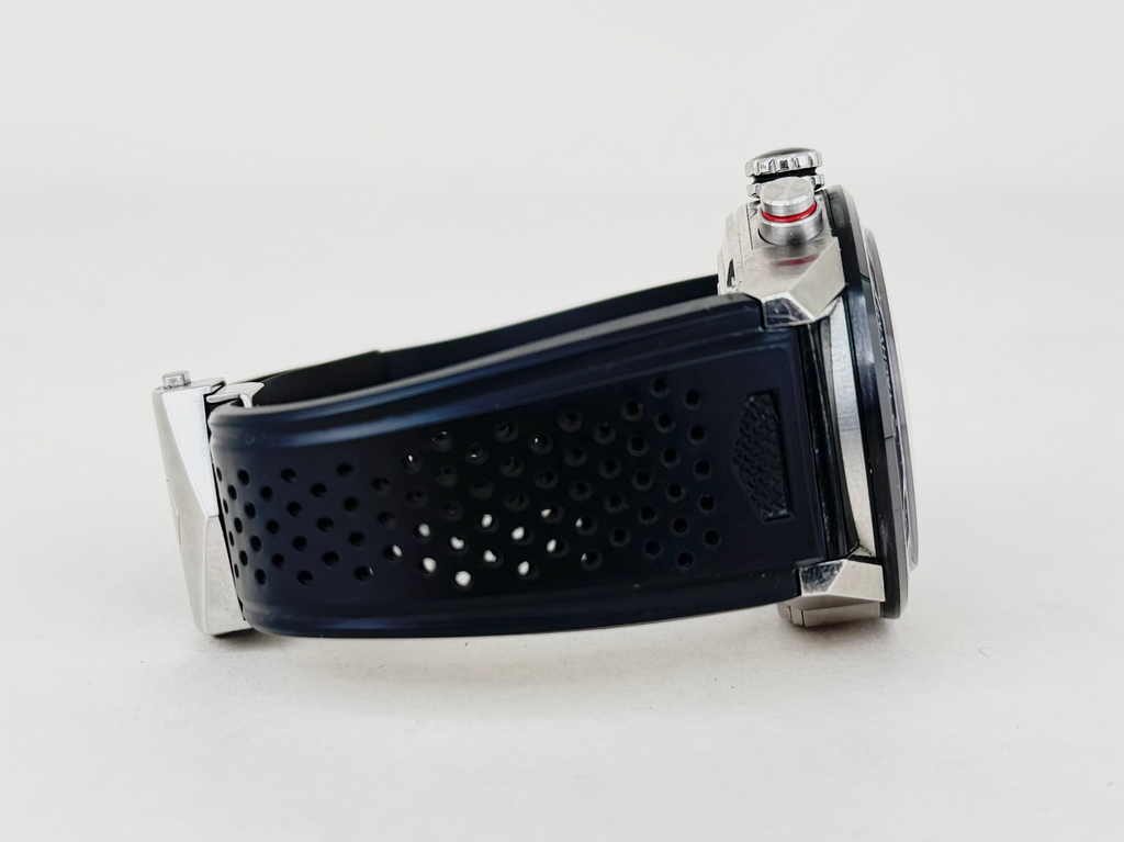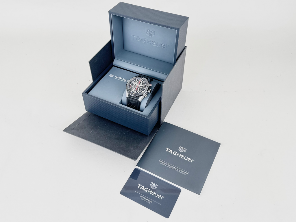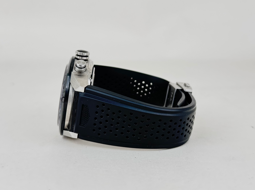 Mærke: Tag Heuer Model: Carrera Calibre 16 Reference: CV2A10 Funktioner: Kronograf, Dato, Dag Størrelse: 43 Stand: God men brugt Materiale: Stål TAG Heuer Carrera CV2A10 – Calibre 16 Chronograph En sporty og moderne TAG Heuer Carrera, drevet af det anerkendte Calibre 16-automatikværk. Modellen har en dybsort skive...