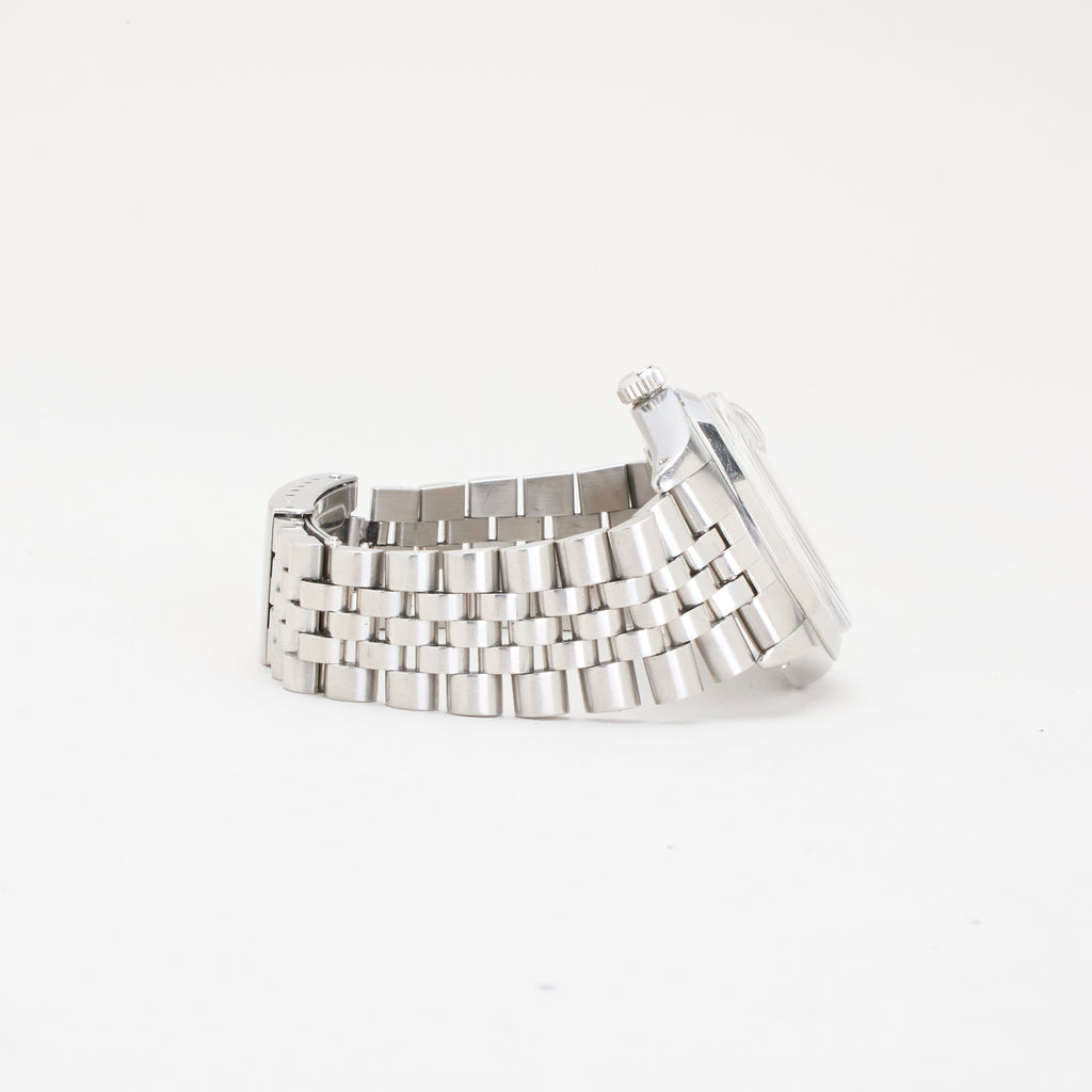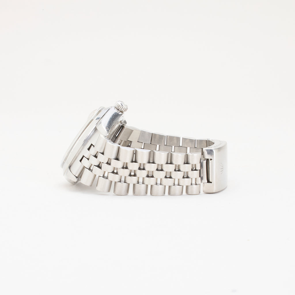 Rolex Oysterdate Precision reference 6694 er et klassisk vintageur, der udstråler ægte Rolex-historie. Modellen er kendt for sit rene, tidløse design med datovisning kl. 3 og den manuelle optræksmekanisme – et kendetegn for ældre Rolex-modeller. Den enkle skive og robuste Oyster-kasse i stål gør uret både elegant og alsidigt.