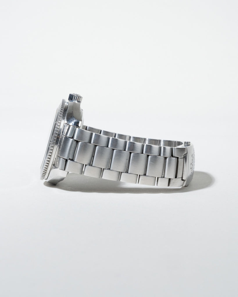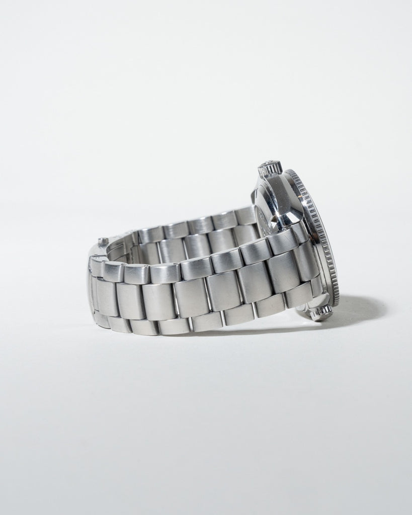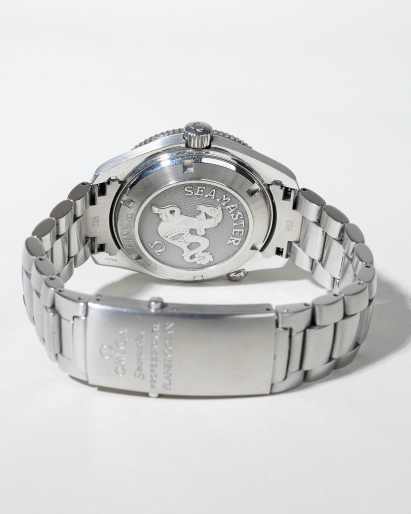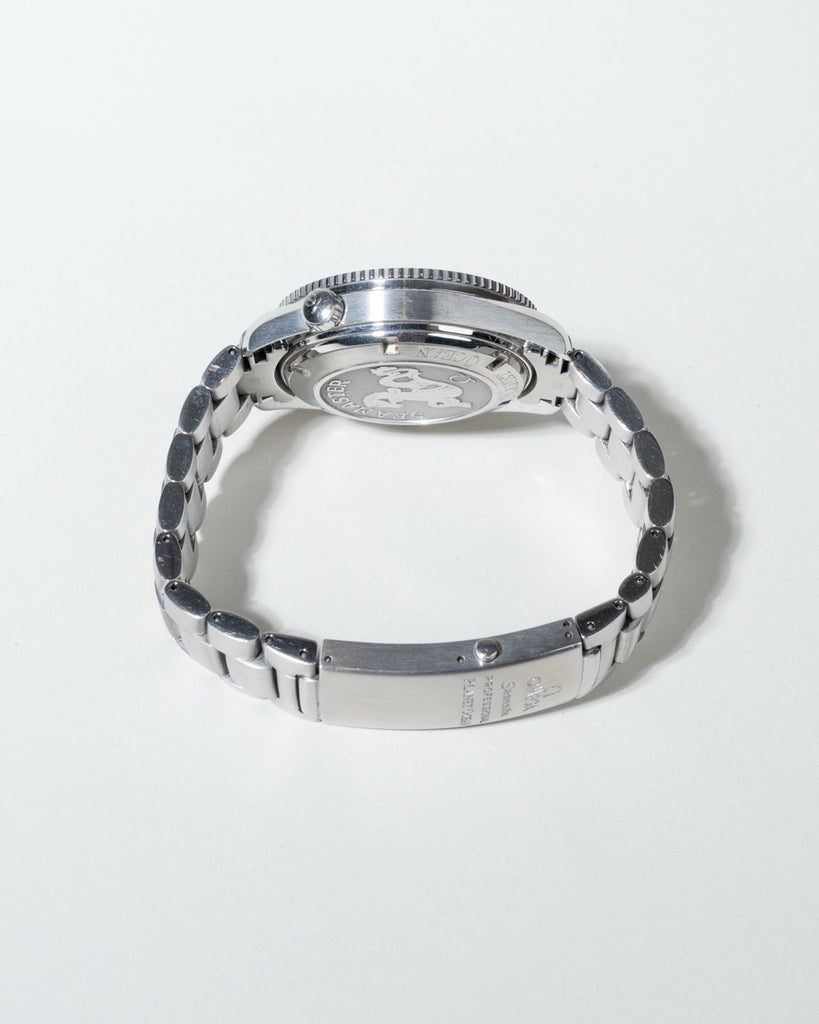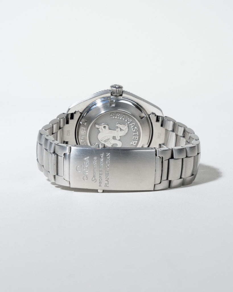 Omega Seamaster Planet Ocean 168.1651 – Co-Axial 600M En robust og professionel dykkerklassiker fra Omega. Denne Planet Ocean-model har en sort skive med kraftige lume-markeringer, arabertal kl. 6, 9 og 12 samt en sort dykkerbezel, der giver et rent og moderne udtryk. Uret er udstyret med Omegas anerkendte Co-Axial-værk, certificeret som kronometer, og tilbyder hele 600 meters vandtæthed. Den solide stållænke understreger urets kvalitet og gør det perfekt til både hverdagsbrug og eventyr under vandet. Et stærkt valg for dig, der ønsker en pålidelig og ikonisk Planet Ocean.