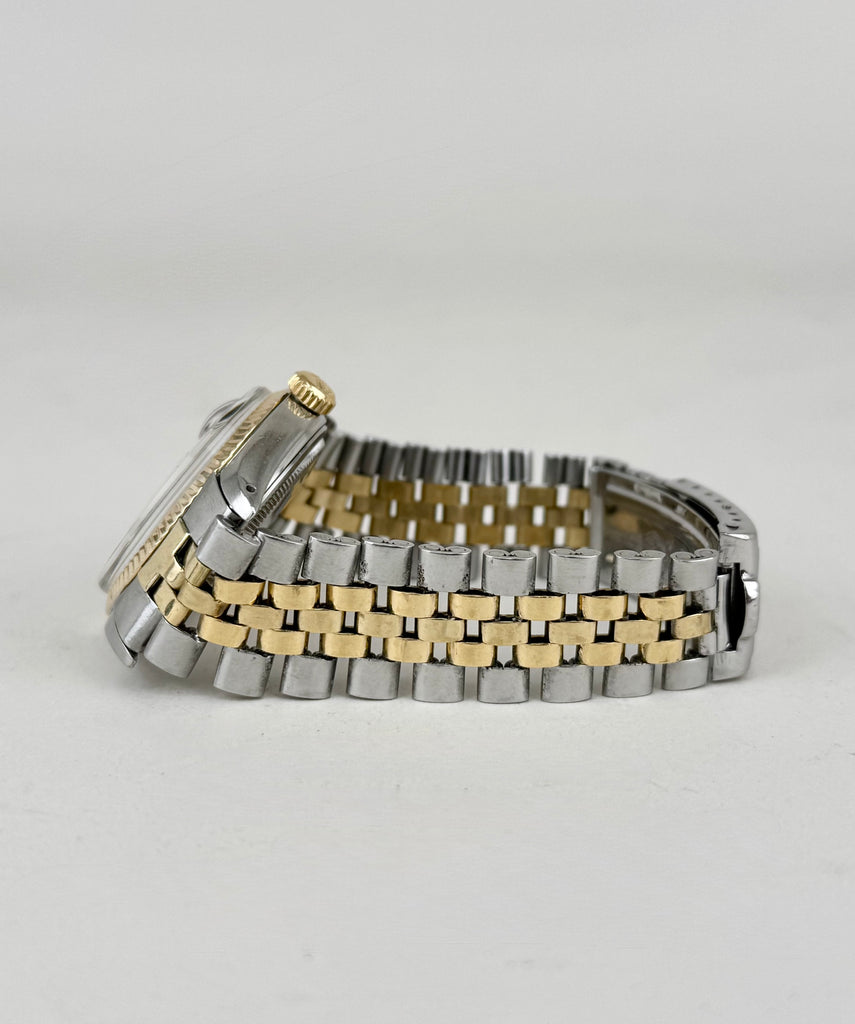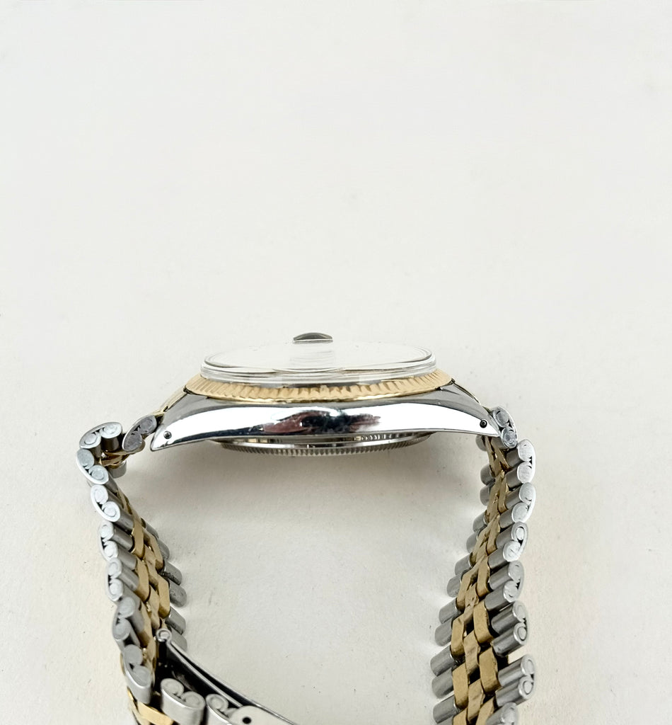 Mærke: Rolex Model: Datejust Reference: 16013 Årgang: 1978 Funktioner: Dato Størrelse: 36 Stand: God men brugt Materiale: Stål, Guld Rolex Datejust 16013 – Stål & Guld En klassisk og eftertragtet Rolex Datejust i Rolesor, kombinationen af stål og 14 kt gult guld. Modellen har en varm champagnefarvet skive...