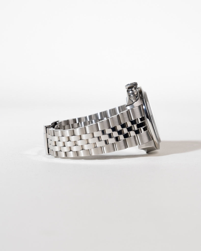 En moderne klassiker fra Tudor, hvor sportslig funktion møder vintageinspiration. Black Bay Chrono M79360N-0013 har den ikoniske “Reverse Panda”-skive med sort baggrund og hvide subdials, indrammet af en tachymeterbezel i stål. Uret drives af Tudors automatiske manufakturværk MT5813 med kronograf og 70 timers gangreserve. Med den nye Jubilee stållænke er dette et ur, der kombinerer præcision, stil og Tudor’s anerkendte kvalitet.