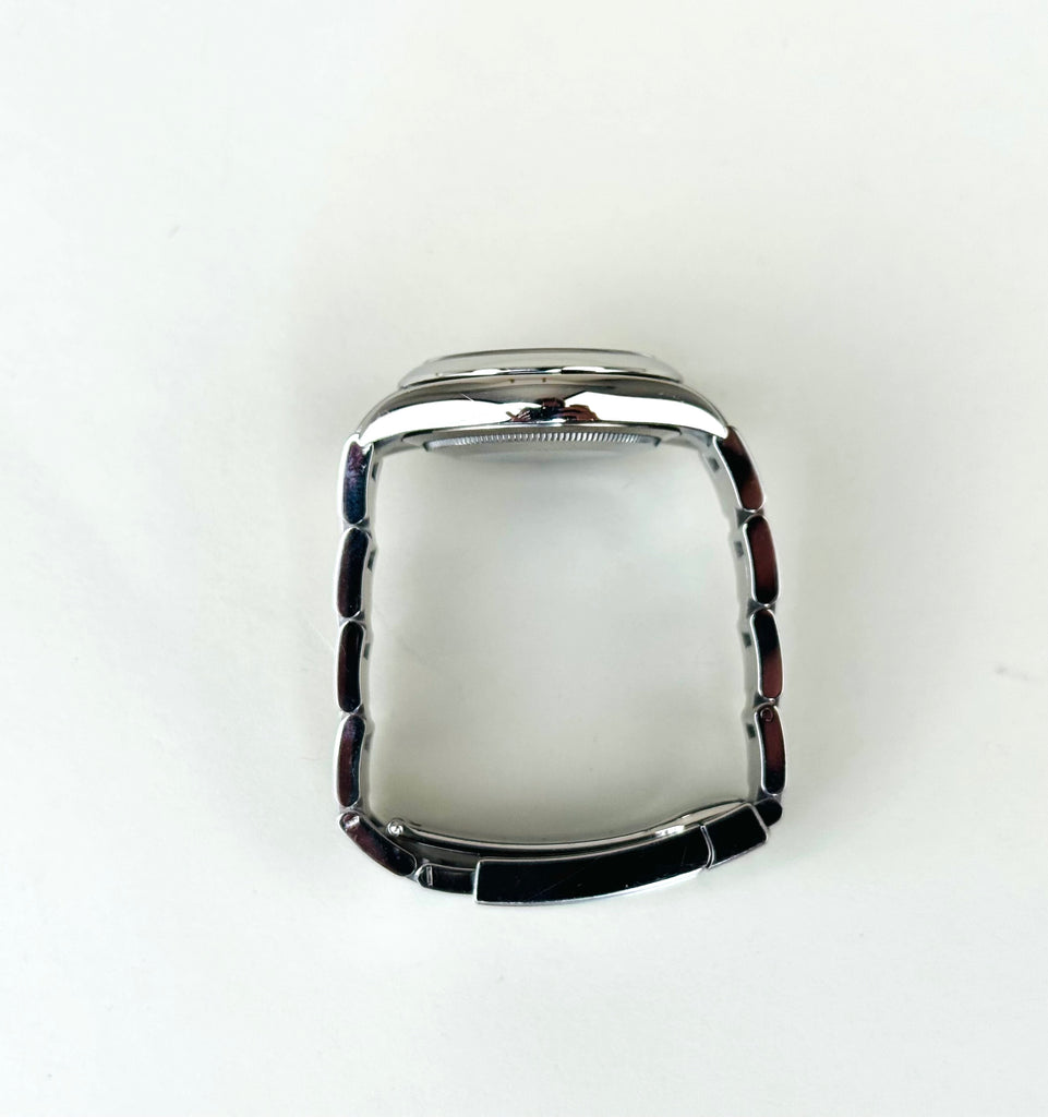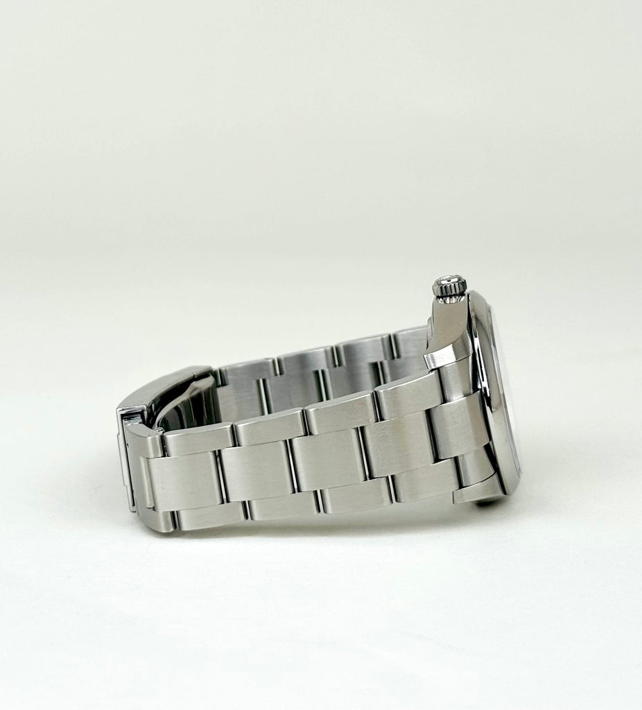 Rolex OP 124200 kombinerer tidløst design med moderne Rolex-kvalitet. Denne model kommer i 34 mm og har en elegant sølvskive med solstrålefinish og romertal-markeringer, der giver uret et sofistikeret, men diskret udtryk. Uret drives af det avancerede Cal. 2232 – et COSC-certificeret værk kendt for præcision og driftssikkerhed. Med sin fulde stålkonstruktion, slanke profil og ikoniske Oyster-lænke er dette den perfekte Rolex til både hverdagsbrug og formelle anledninger.