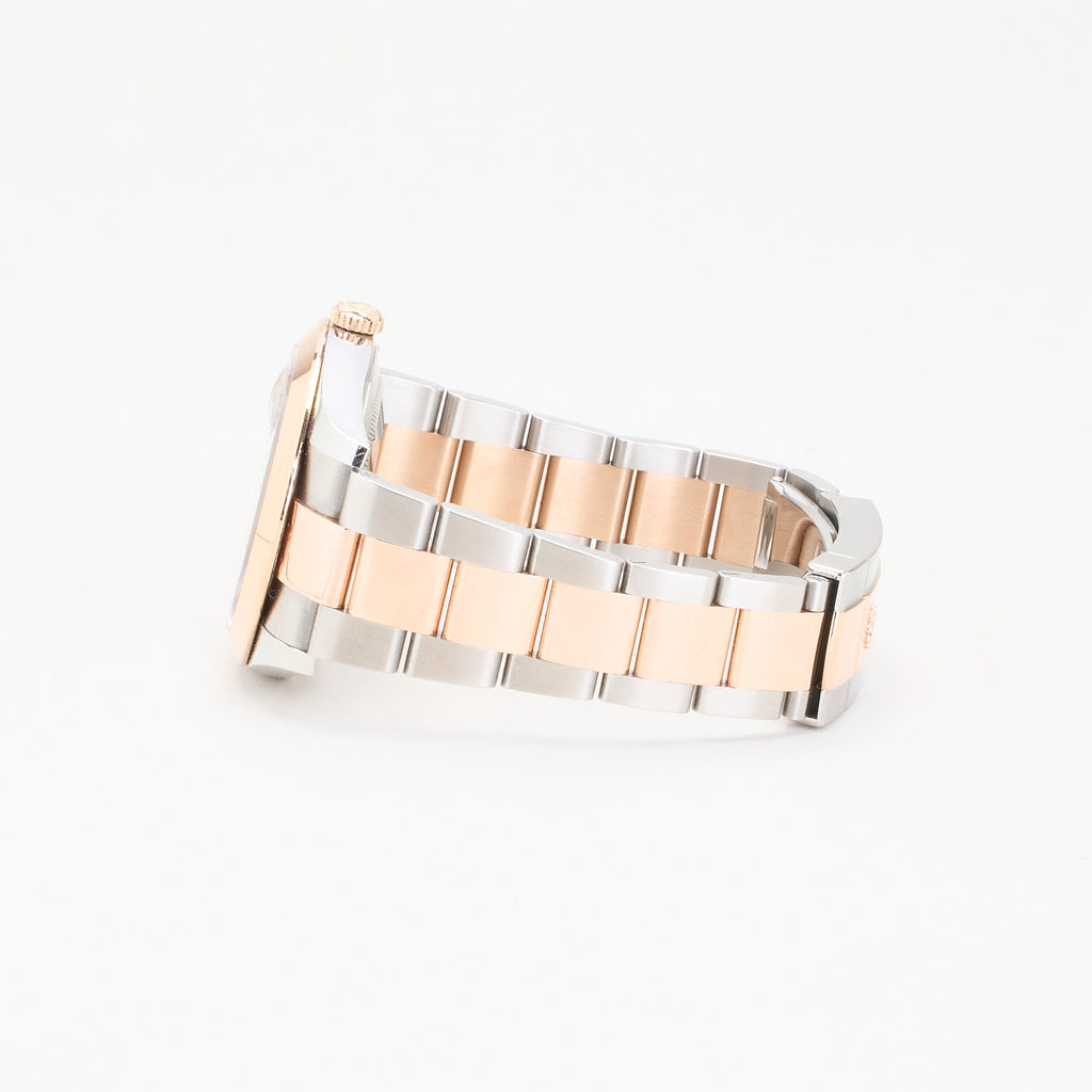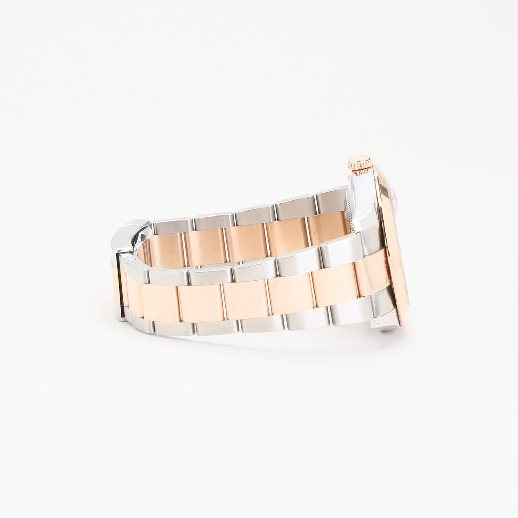 Rolex Datejust 41 reference 126301 forener klassisk elegance med moderne design. Uret er udført i stål og 18 karat Everose-guld med en smuk rosaguld-tone, der giver et varmt og sofistikeret udtryk. Indeni tikker caliber 3235 – et præcisionsværk med imponerende gangreserve og certificeret præcision.