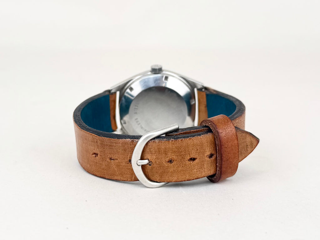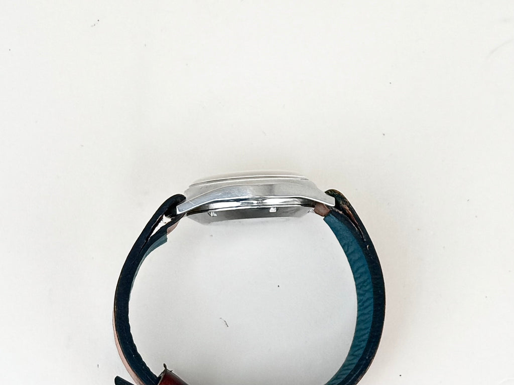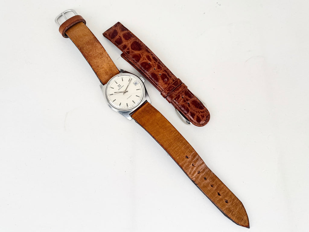 Et stilrent og klassisk vintageur fra Zenith, drevet af det anerkendte automatiske Zenith 2572-værk. Modellen har en sølvfarvet skive med slanke sorte timemarkeringer, datovisning ved klokken tre og et minimalistisk udtryk, der afspejler 1970’ernes designæstetik. Den robuste stålkasse kombineret med den brune læderrem giver uret en varm og tidløs fremtoning. Et perfekt valg for samlere og entusiaster, der værdsætter ægte schweizisk urhistorie og mekanisk kvalitet.