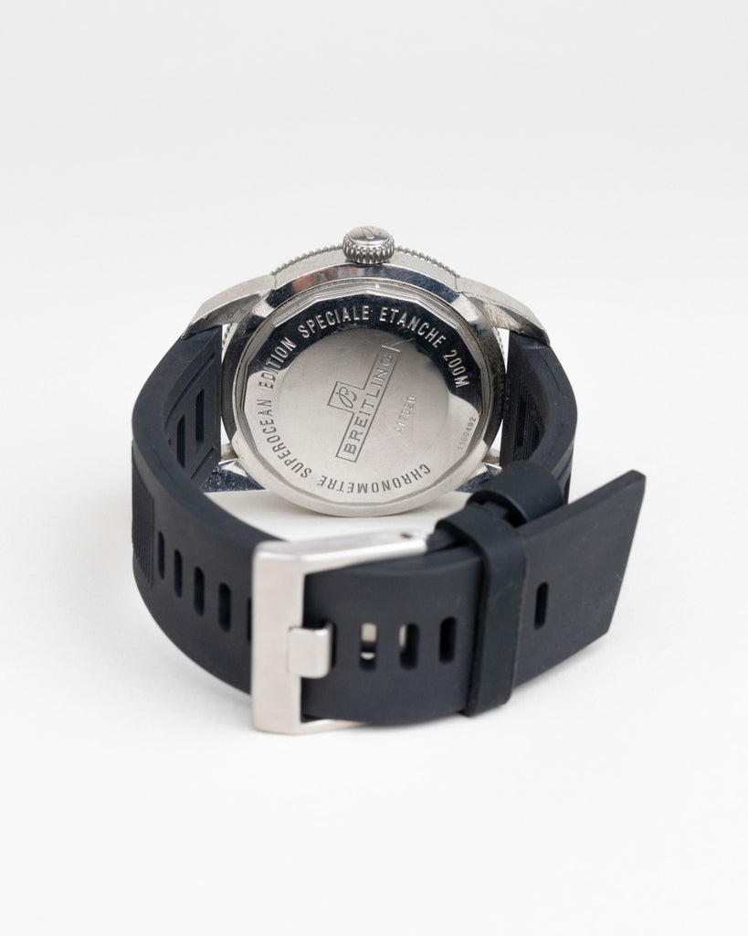 En robust og sporty dykkerklassiker fra Breitling. Superocean A17320 tilbyder imponerende vandtæthed, en kraftig stålkasse og en ren, funktionel skive med høj læsbarhed. Det automatiske Breitling Calibre 17-værk sikrer pålidelig præcision, mens den solide konstruktion gør uret velegnet til både daglig brug og eventyr under vandet. Et stærkt valg for dig, der ønsker et kvalitetsdykkerur med tydelig Breitling-DNA.