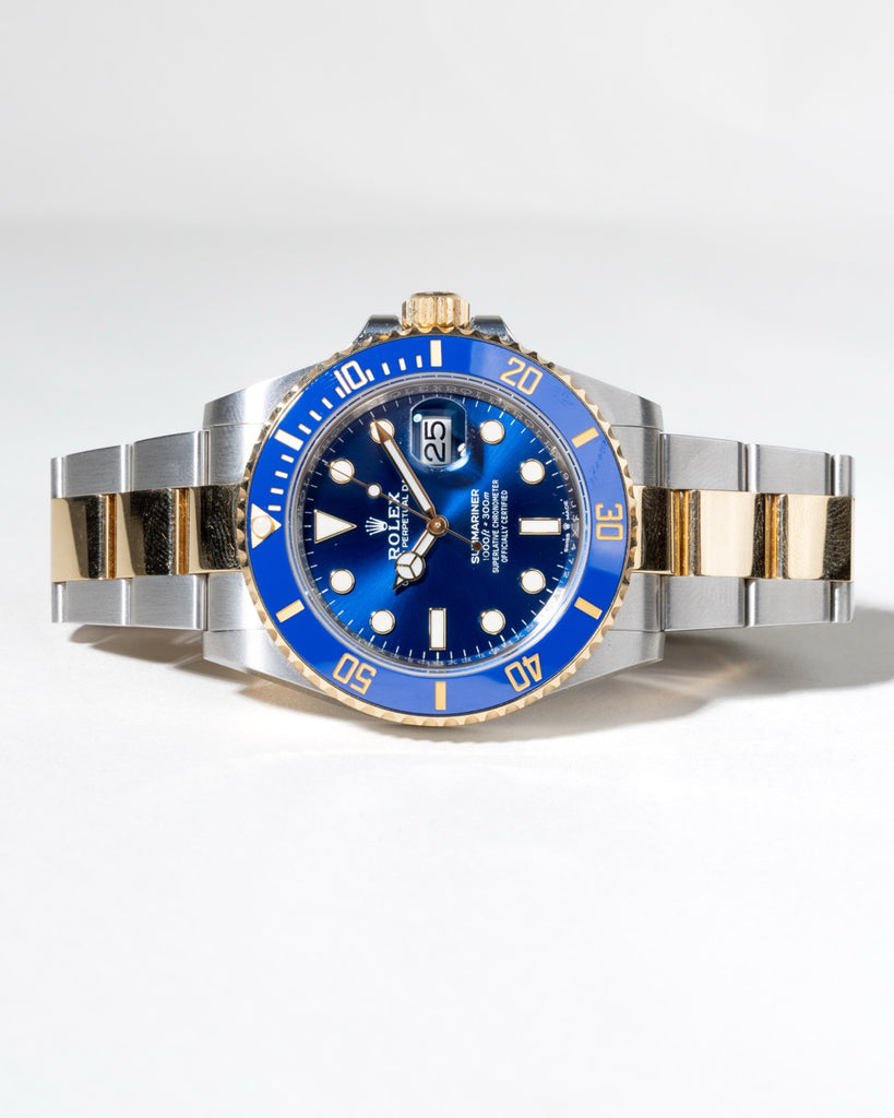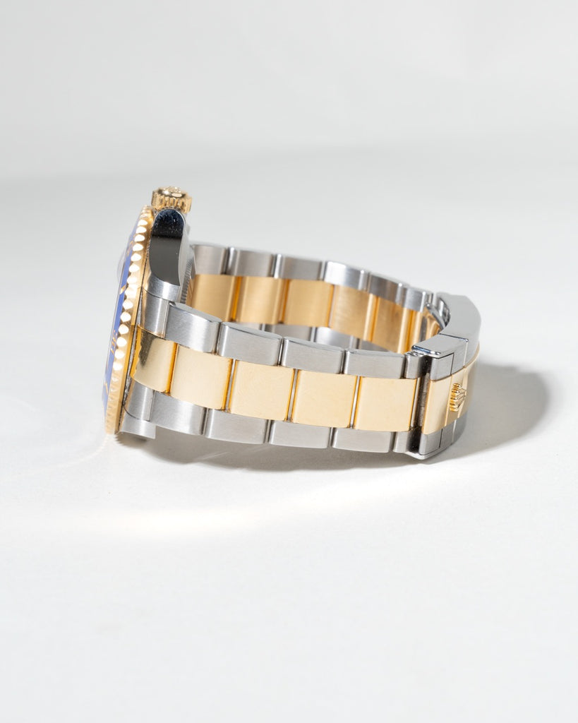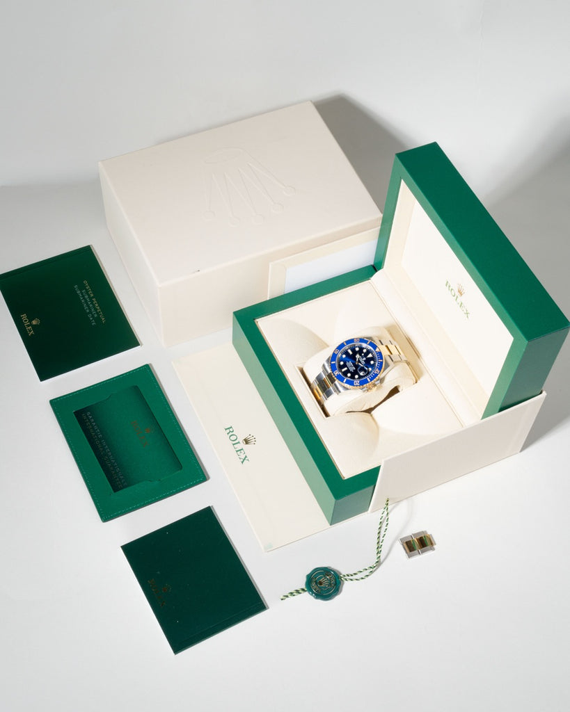 Rolex 126613LB er den moderne udgave af den ikoniske “Bluesy” – en Submariner i stål og 18k guld med den karakteristiske blå skive og bezel. Uret kombinerer professionel dykkerfunktionalitet med luksuriøs elegance, og den skarpe solblå skive giver et look, der virkelig skiller sig ud. Med det robuste 41 mm kabinet, keramisk bezel og Rolex’ nyeste værk, Cal. 3235, får du både præcision og holdbarhed i absolut topklasse. En af de mest eftertragtede to-tone Submarinere på markedet.
